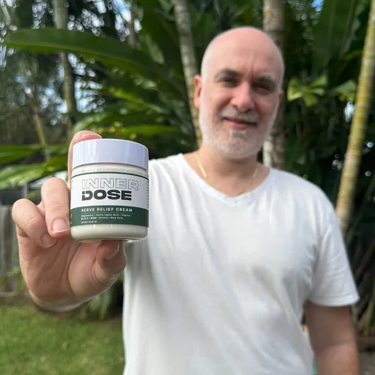 La Crema Nerve Relief de Inner Dose está pensada para aliviar el ardor, hormigueo y entumecimiento que aparecen por tensión nerviosa o sobrecarga muscular, devolviéndole calma y confort a tu cuerpo.